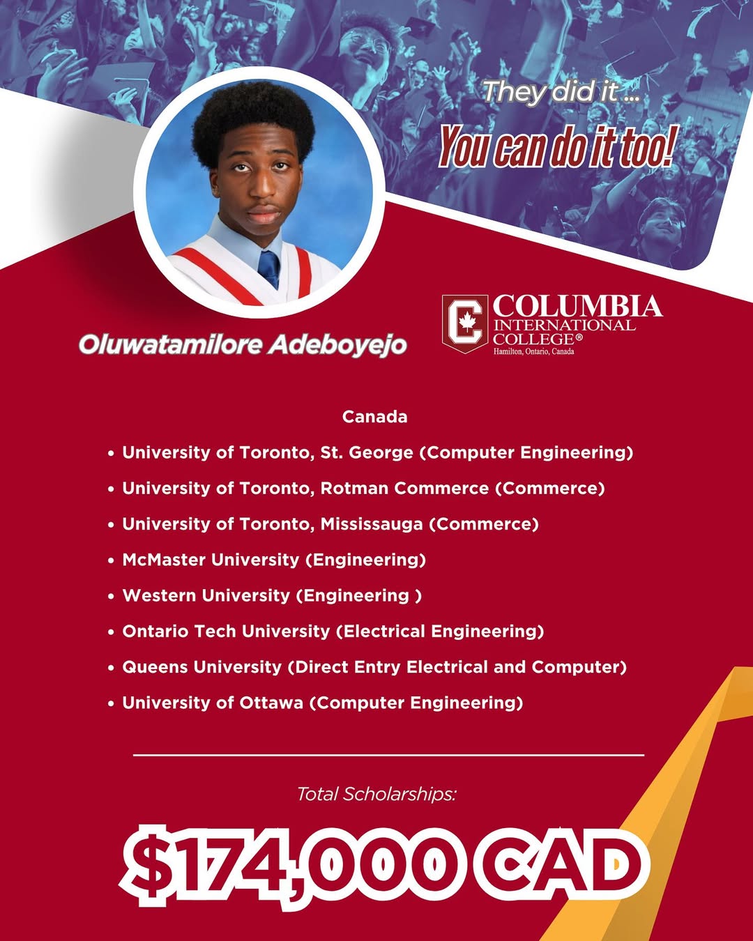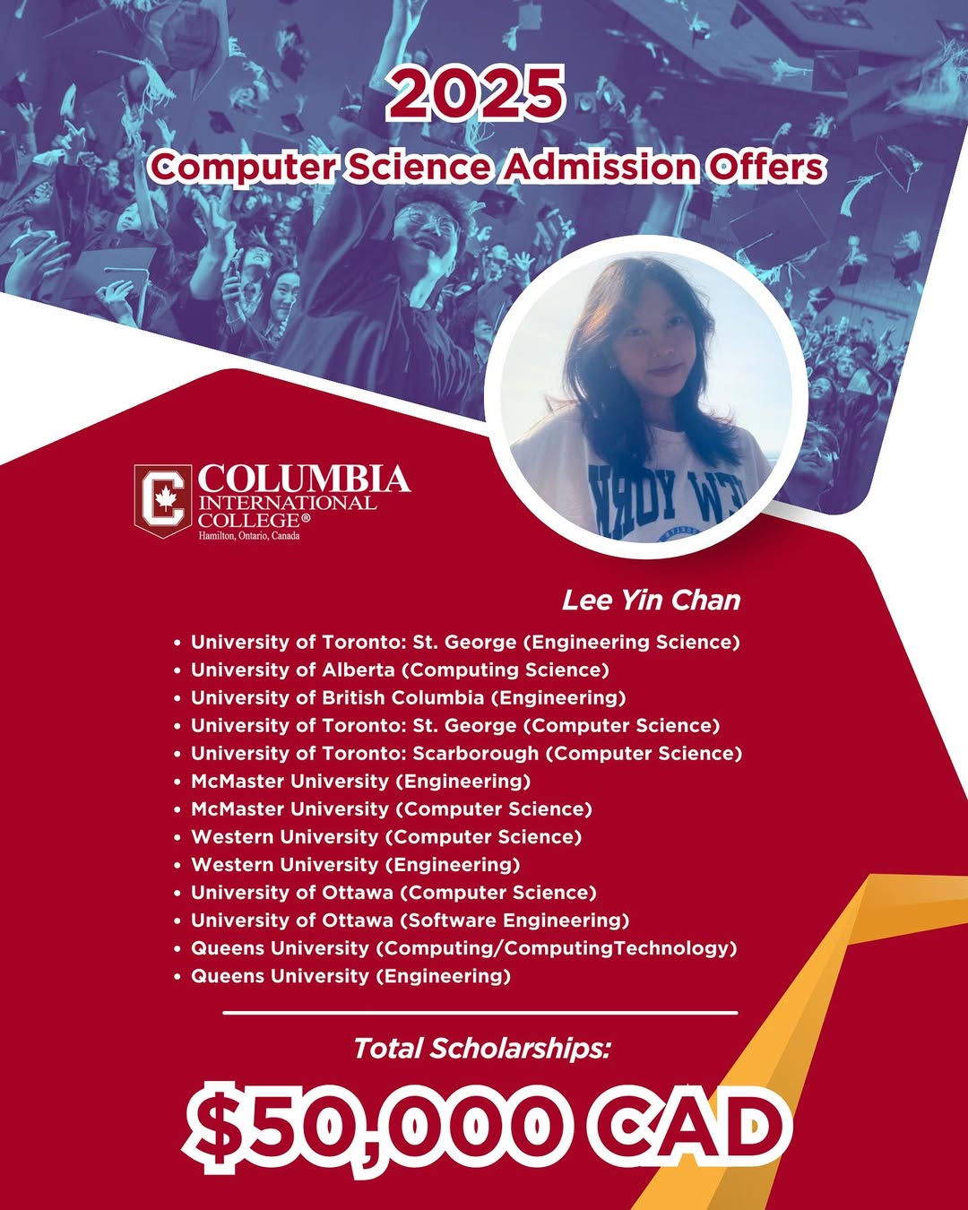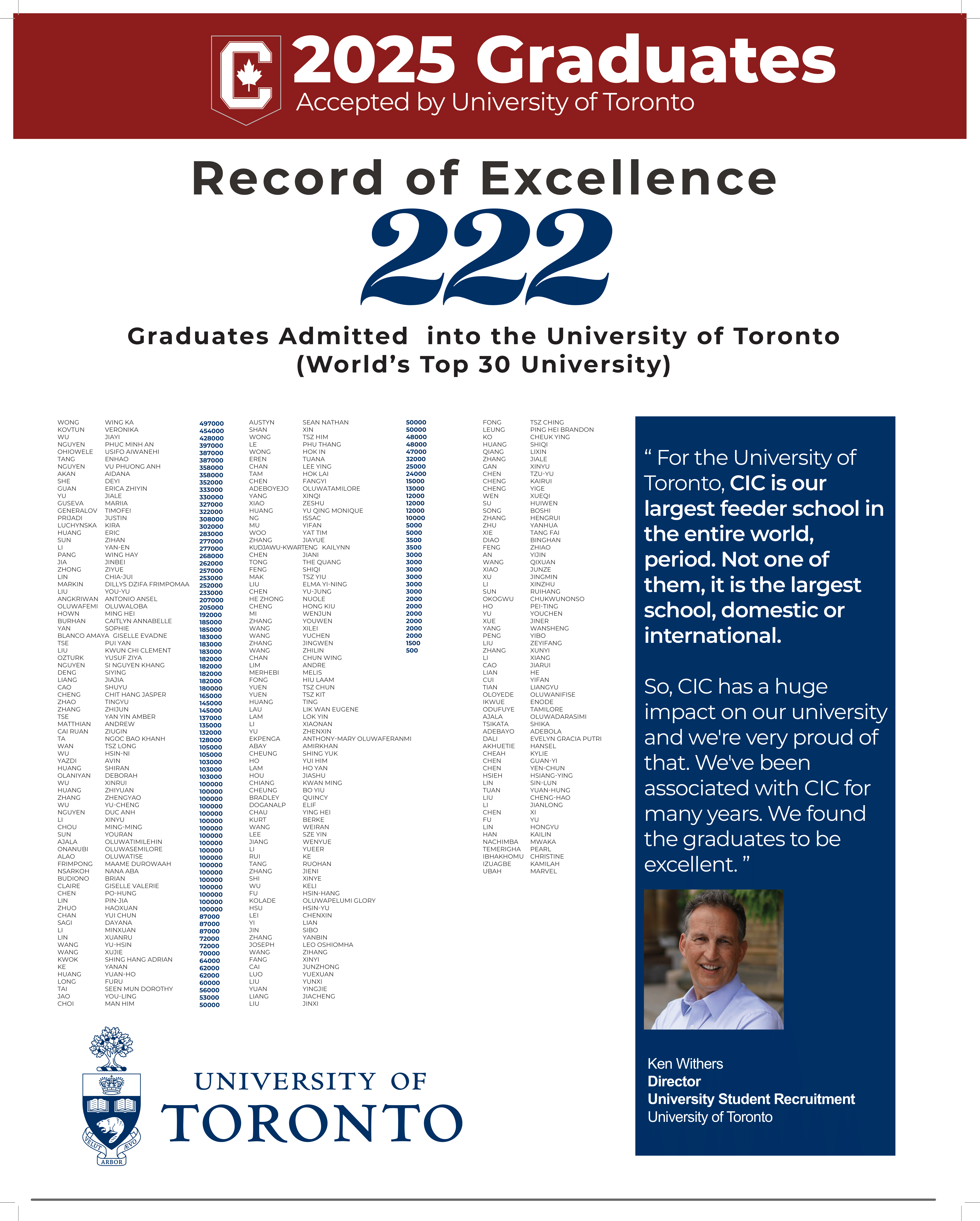 - Grads Admitted to UofT, McMaster and Waterloo