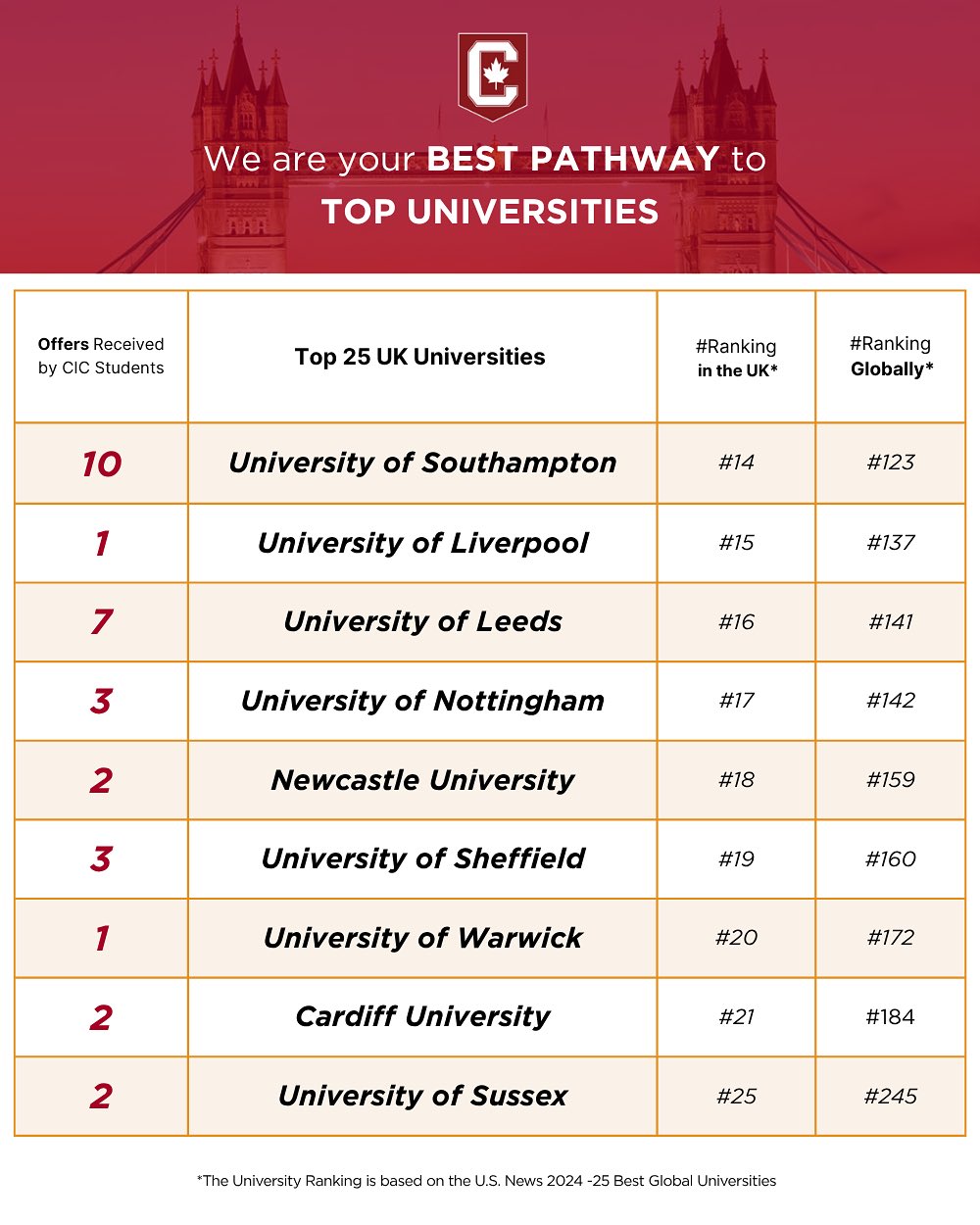 - Offers from Top UK Universities