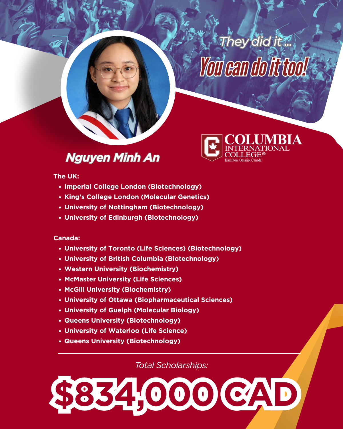 CIC’s graduates continue to be sought after by universities that value well-rounded individuals with academic strength, leadership experience, and a global mindset.